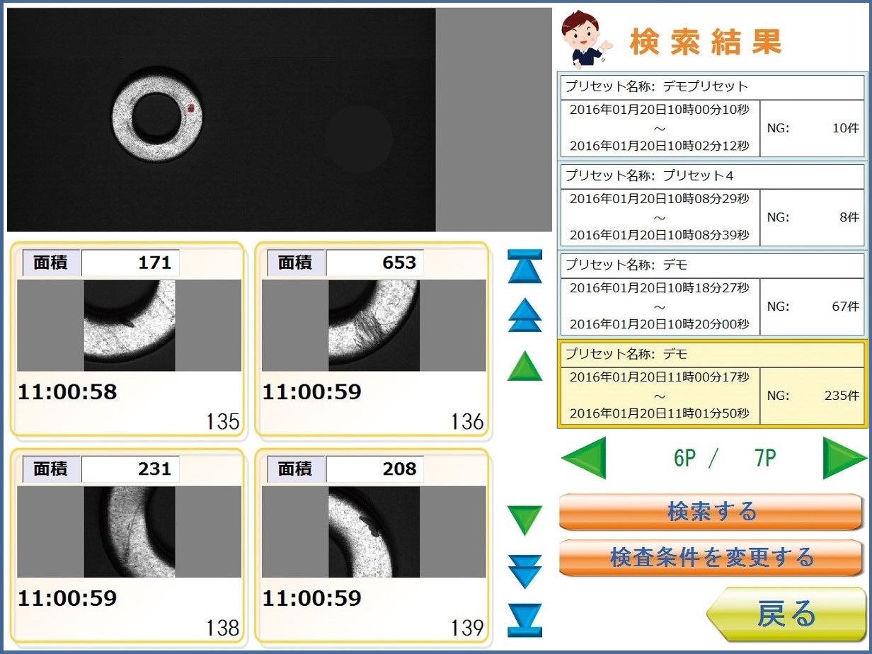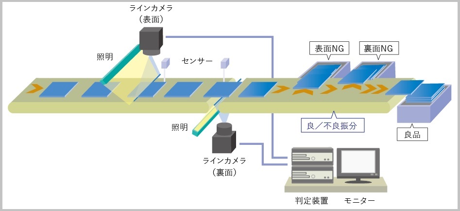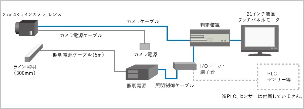 <特徴> ・簡易設定 ガイダンスに従って検査条件をタッチパネルで直感的に設定 ・検査モニター 検査状況が一目で判るモニターを用意 検査の“見える化”を実現 ・ラインカメラ映像 エリアカメラでは実現できない高分解能と優れた光学条件 ・トリガー/連続検査 トリガーによる個体検査、連続検査の両方の用途に対応した検査を実現 ・検査サマリー 検査結果をテキスト形式、検出対象の周辺画像をBMP形式で出力、原因の根本対策 |